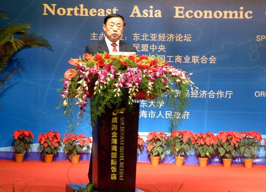 大眾網10月8日威海訊 今天,2004東北亞經濟合作論壇在威海隆重開幕。圖為山東省省長、東北亞經濟合作論壇組委會主席韓寓群在發(fā)表題為《擴大交流 促進合作 實現東北亞的共同繁榮與發(fā)展》的主旨演講。(特派記者 曲濤 報道) |