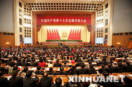 10月21日九時,中國共產黨第十七次全國代表大會閉幕會開始在北京人民大會堂舉行。 新華社記者 馬占成攝