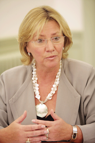 在龍比亞大學(xué)的校長辦公室,記者見到了這位異域的“山東省榮譽公民”。瓊·斯特林格教授——一位從容、優(yōu)雅而豐韻的中年女士。她一頭金色的短發(fā),一件飄逸的灰色外衣,一圈象牙白的貝殼項鏈,臉上帶著優(yōu)雅的微笑。