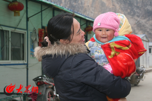 黃彥明,地震前在一家電子公司上班,現(xiàn)在還沒有復工。“從今年1月1日起,單位不再發(fā)工資了”,他說,“靠政府的補貼不夠,只能再到 安縣、綿陽打打工”。談起地震,黃彥明告訴記者,自己出生8天的女兒硬是從地震中抱出來的。說話間,他媳婦從板房外走進,抱著已經(jīng)8個月咿呀可愛的女兒。