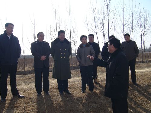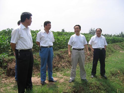 臨邑縣縣委副書記、縣長(zhǎng)劉長(zhǎng)民(左二)陪同省水利廳副廳長(zhǎng)馬承新(左一)、副廳長(zhǎng)曹金萍(左四)