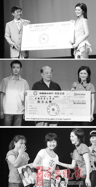 韓國中央大學(xué)捐款。 凡得鞋服捐款。 小安然再次見到張娜拉姐姐,非常開心。 |
