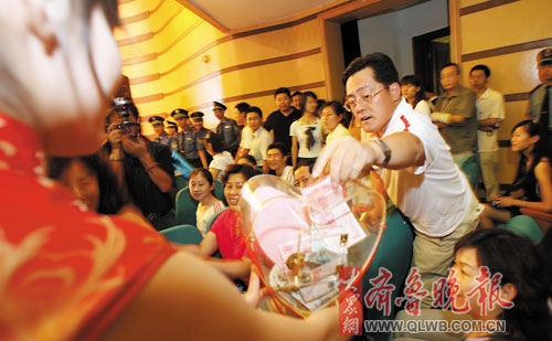昨晚張娜拉與齊魯晚報藝術(shù)團同唱《同一個世界同一個夢想》! ”景鎴D片均由本報記者 陳文進 郭建正 左慶 攝 |