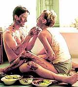 赤裸基努與塞隆新片中共嘗“人體巧克力”