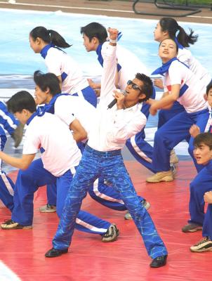 重慶專電:為甲A開幕式助興,第一次到重慶的郭富城不僅在大田灣的甲A開幕式上用歌聲扮酷,還在重慶的美眉面前用“身體”扮酷。繼天王在球場上一襲白色敞懷衫“逗靚”后,前(10)日晚間的新聞發(fā)布會上又換上一件“藍(lán)花花”的襯衣,紐扣故意松開幾顆,露一點胸膛。當(dāng)記者問及郭天王這副“時尚街仔”“居心何在”時,郭富城大叫:“哇噻,我特別喜歡在重慶露胸,是想獻(xiàn)給漂亮的重慶妹妹”,這話立即引起現(xiàn)場女孩們幸福的尖叫。