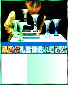 當(dāng)時,楊惠姍在美國橙郡包爾斯博物館舉辦一個展覽。一位來自奧斯卡組委會的官員只是想來隨便看看中國的工藝品,沒想到一見到《古風(fēng)六品》的包裝就被其細膩的湘繡手法、極具中國特色的牡丹圖案所吸引,嘖嘖稱贊。當(dāng)她打開包裝盒時更是贊不絕口:“外面美,里面更美!我沒想到中國會有這么精美的琉璃制品,用琉璃來做酒器,我也是第一次看到,它能使美酒的顏色更美!彼(dāng)即向楊惠姍提出了將中國琉璃放入奧斯卡禮品籃的要求。