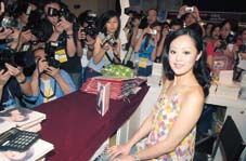 章小蕙昨日為她的舊書(shū)簽名促銷,對(duì)于記者連珠發(fā)炮的提問(wèn),她一概不答,并透過(guò)助手向在場(chǎng)記者取名片,表示會(huì)私底下回復(fù)。