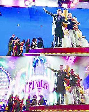 哈里和裘德.洛一起站在繁華絢麗的背景前。當(dāng)人們看到鏡頭上那些城市美景的時(shí)候,沒(méi)有人會(huì)想到鏡頭里的景色混合著實(shí)景與模型,甚至一些“摩天大廈”都不過(guò)是擺在桌上的模型而已。