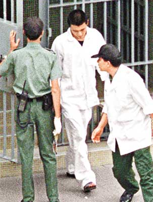 昨晨約十一時(shí)二十分,謝霆鋒穿上不太合身的白色病人衫褲,白褲有點(diǎn)“拖地”,由一名拘留所職員押送離開(kāi)醫(yī)院,進(jìn)入毗鄰另一幢建筑物,逗留了八分鐘便折返醫(yī)院。其后他換上灰色短袖囚衣,在三名人員“品”字形護(hù)送下,再次離開(kāi)醫(yī)院,相信是前往會(huì)見(jiàn)室與父母見(jiàn)面,約半小時(shí)后,又被送回醫(yī)院。