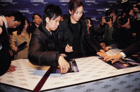 后來我亮出記者的牌子,被保安引導著進入一個區(qū)域,被后面的波浪涌進前排。劉嘉玲一襲黑衣,短裙。穿長裙子的那個,是“浪琴表”的副總。