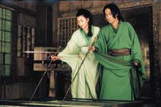 梁朝偉和張曼玉在電影《英雄》中,有場(chǎng)戲講他們開書齋教學(xué)生書法。久沒有拿起毛筆書法的偉仔為求演出時(shí)神似,不借助替身之手,事前先跟老師好好練習(xí),到正式拍攝時(shí),他即席揮毫寫了個(gè)“劍”字,眾人都贊他有姿勢(shì)亦有實(shí)際。