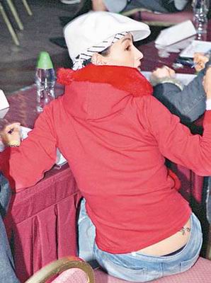 張柏芝為忘失戀傷痛,在腰間紋了新紋身。有見王菲重戴情侶鏈,柏芝昨日穿上超低腰褲,公開展示“情逝紋身”示威!