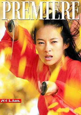 2003年新出爐的一月號《首映》雜志赫然出現(xiàn)電影《英雄》的報道,而且獨鐘章子怡,一襲紅衣?lián)]舞雙刀的造型,當(dāng)場將主角的李連杰比了下去,而演員排名,章子怡也在梁朝偉、張曼玉之前。