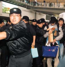 有傳與其他成員不和的言承旭,昨日只身低調(diào)赴香港,為慈善演唱會(huì)率先彩排;原本只有十多護(hù)衛(wèi)在場(chǎng),但卻有二百多位歌迷聞風(fēng)而至接機(jī),消息比記者更靈通。大會(huì)未料眾多歌迷到場(chǎng),所以現(xiàn)場(chǎng)有點(diǎn)混亂。言承旭出閘時(shí)把漁夫帽拉得極低,幾乎看不到其樣子;接著他便返酒店逗留片刻再往彩排,而其余三位成員則在今天抵達(dá)香港。(明)