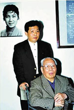 吳祖光一家人 吳祖光、吳歡在新鳳霞照片前