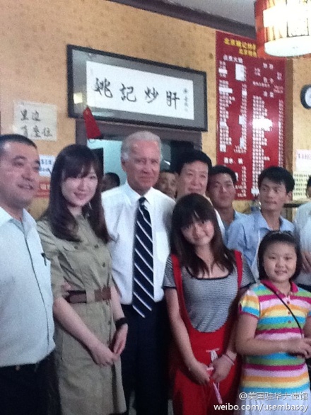 美國副總統(tǒng)拜登與家人共享北京炸醬面