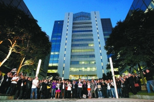 7月9日,倫敦,在制作完最后一期后,《世界新聞報》的采編人員走出他們工作的新聞國際所在大樓。