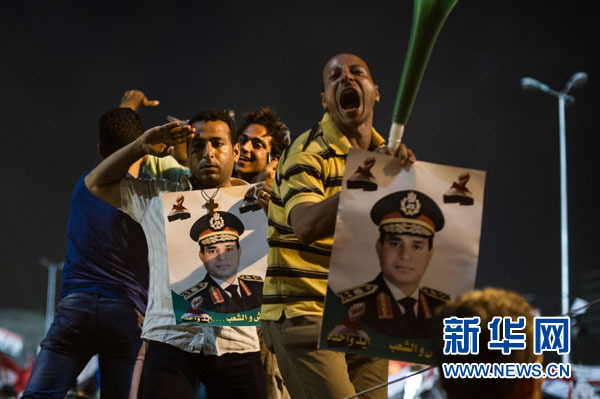 7月3日,在埃及開羅,反穆爾西民眾在解放廣場慶祝。埃及國防部長塞西3日晚發(fā)表全國電視講話,宣布提前舉行總統(tǒng)選舉、由最高憲法法院院長暫行總統(tǒng)職權。 新華社記者李木子攝