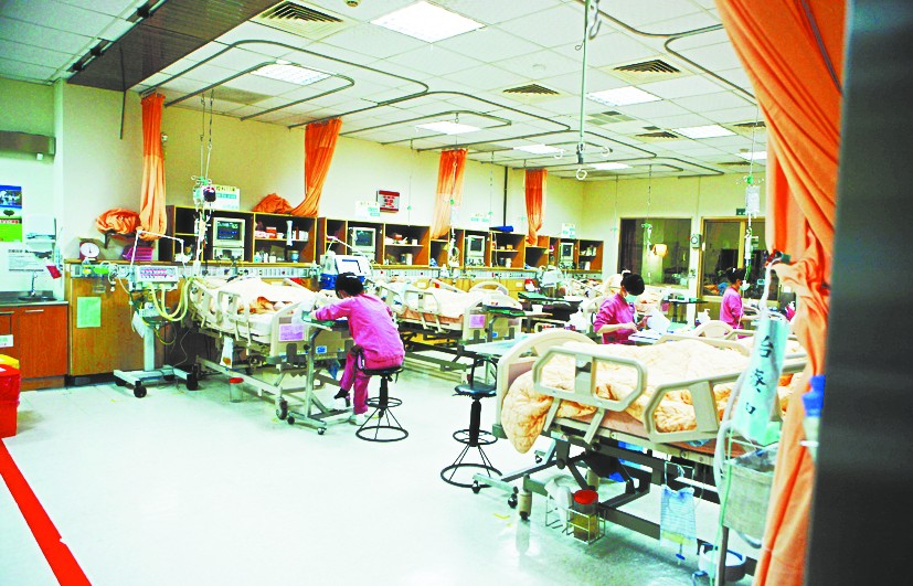 28日,工作人員在嘉義市圣馬爾定醫(yī)院的加護病房內(nèi)忙碌。