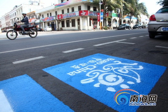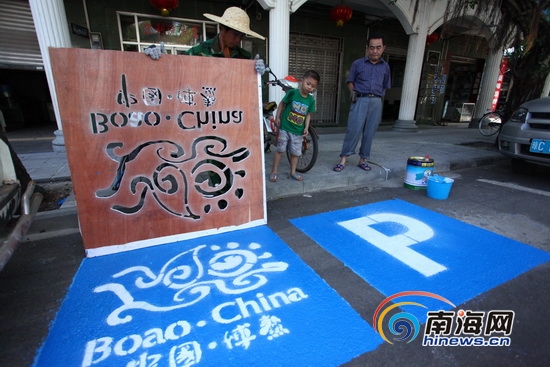 印有“博鰲”元素的停車位(南海網(wǎng)記者張茂攝)