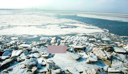 膠州灣現(xiàn)大面積冰凍 海灣大橋施工受影響