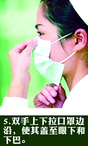 5、雙手上下拉口邊沿,使其蓋至眼下和下巴。