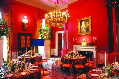 這場國宴有創(chuàng)舉:225名賓客將分坐3廳,國宴廳、藍廳和紅廳,然后再前往東廂欣賞娛樂表演。白宮將在藍、紅兩廳架設大銀幕,讓無緣進國宴廳的賓客看到敬酒畫面。