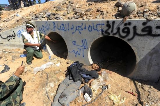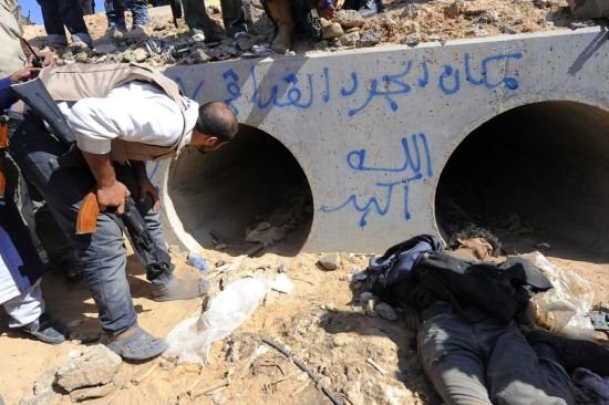 - 卡扎菲身藏下水道命喪家鄉(xiāng) 尸體運(yùn)往米蘇拉塔