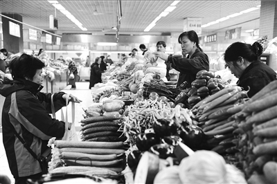 前天,市民在菜市場(chǎng)買(mǎi)蔬菜。本報(bào)記者王海欣攝