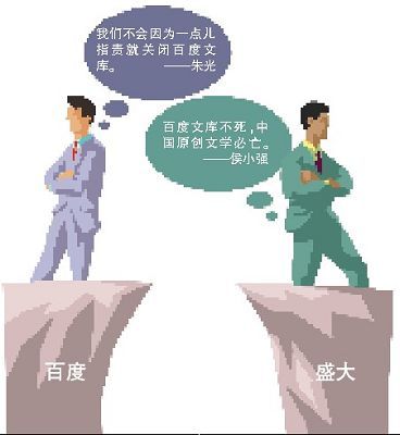 二十多天前,盛大文學(xué)CEO侯小強(qiáng)在微博上憤然寫下:“百度文庫不死,中國原創(chuàng)文學(xué)必亡!笔⒋笈c百度之間的矛盾昭然若揭。侯的發(fā)難旋即讓百度陷入輿論漩渦,然而,百度僅僅派出一名產(chǎn)品經(jīng)理做簡單回應(yīng),頗有些舉重若輕的味道。
