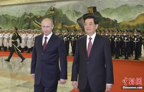 來源: 中國新聞網(wǎng)[提要] 6月5日,中國國家主席胡錦濤在北京人民大會堂舉行儀式歡迎俄羅斯總統(tǒng)普京訪華。兩國元首表示,雙方將加強配合,使即將召開的上海合作組織北京峰會取得成功,推動上海合作組織向前發(fā)展。