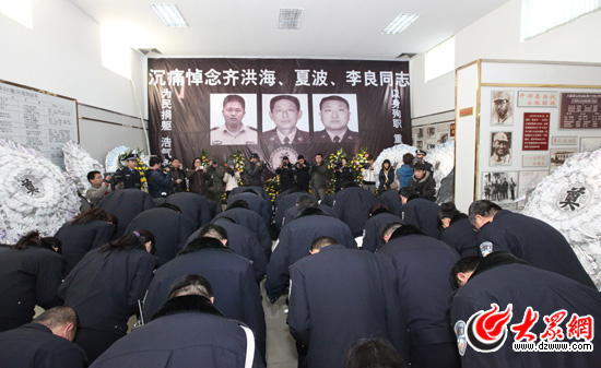 大眾網(wǎng)泰安1月7日快訊(記者 曹亮 盛堃 王磊 韋國騫)泰山南麓,哀樂聲鳴。從今天上午8:30起,泰安市全體公安民警在泰安市革命烈士陵園革命展覽館舉行悼念活動。泰安市市民及社會各界人士數(shù)千人手捧鮮花,也來到革命展覽館,深切緬懷在“1.04”襲警案件中殉職的兩名民警和一名協(xié)勤。稍后大眾網(wǎng)將帶來詳細(xì)報(bào)道。