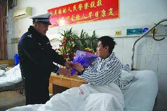 據(jù)在場的一名民警介紹,每次執(zhí)勤的時(shí)候,他們倆都沖在最前面,敢于與歹徒搏斗。特別是劉峰,這已經(jīng)是第三次受傷住院了。他們還沒把受傷的情況告訴父母!笆軅,趙偉的父母曾經(jīng)打電話過來問過他,因?yàn)榕录胰藫?dān)心,他沒有和父母說,直到現(xiàn)在他的父母也不知道他受傷的事情!痹撁窬f。醫(yī)護(hù)人員告訴記者,撞車后,他們倆的胸部和腰部都不同程度地受了傷,所幸傷情不是很重。
