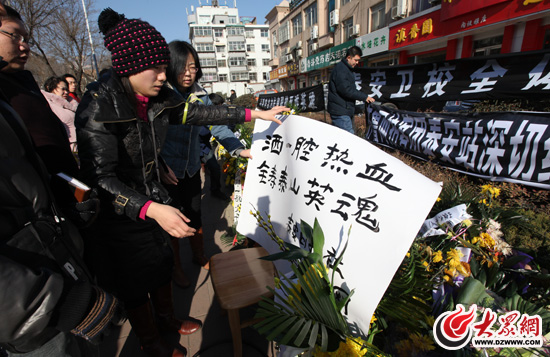 泰山車友聯(lián)盟的趙亮告訴記者,從今天上午開始,車友們便自發(fā)集結起來,紛紛系上黃絲帶,向在案件中遇難的英雄們表示哀悼。