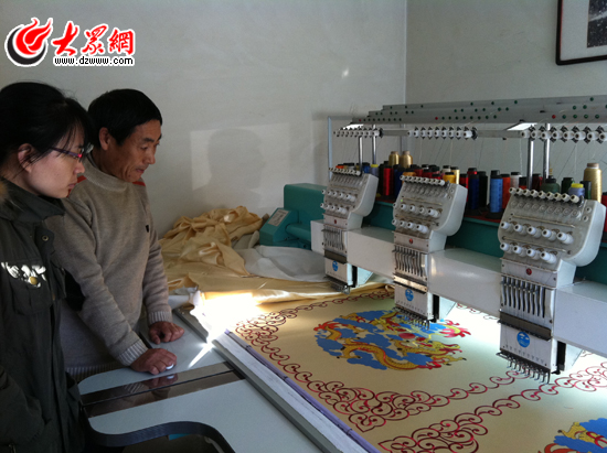 “我們的農(nóng)民畫繡現(xiàn)在是畫圖起稿,著色,電腦制版,刺繡,深加工,銷售一條龍,已經(jīng)形成了我們自己的產(chǎn)業(yè)鏈,目前已經(jīng)簽署了好幾個大單,行業(yè)發(fā)展前景很好。下一步我們將進一步加大研發(fā)力度,充分挖掘日照民俗文化資源,結(jié)合我們企業(yè)的自身優(yōu)勢,繼續(xù)深入打造日照農(nóng)民畫繡這一品牌,為我們的民間文化多貢獻點力量!壁w家樂開心的告訴記者。
