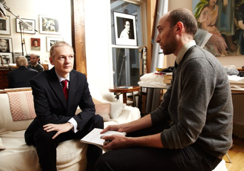 阿桑奇(左)11月11日在倫敦接受《福布斯》專訪