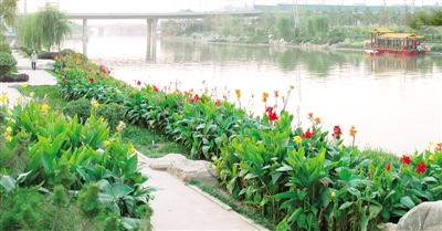 它是這么美,垂釣的人們與水中的柳影、水面的鷗鷺構(gòu)成一幅美麗的畫卷,任兩岸的綠意長廊、雕塑小品及層層遠(yuǎn)去的現(xiàn)代建筑爭奇斗艷。