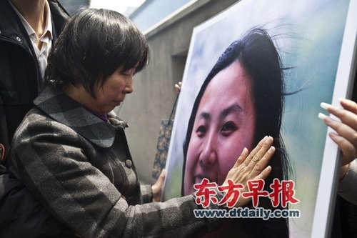 來(lái)源:大眾網(wǎng)圖片說(shuō)明:昨天,寶山殯儀館,復(fù)旦抗癌女教師于娟追悼會(huì)舉行,頭發(fā)花白的于娟母親輕撫著于娟的巨幅肖像。早報(bào)見(jiàn)習(xí)記者楊一